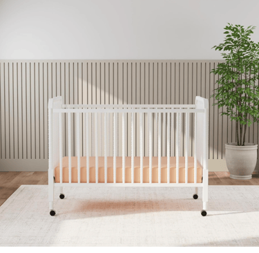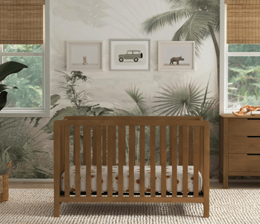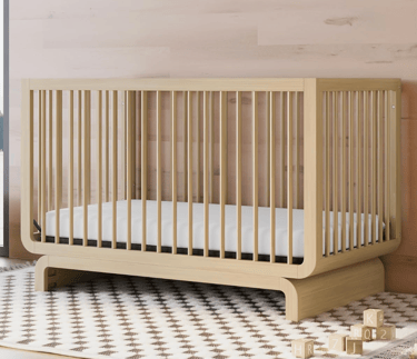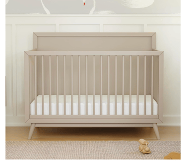 A well-rated mid-range crib with a simple silhouette that fits nicely in limited space. Convertible and functional without extra bulk.