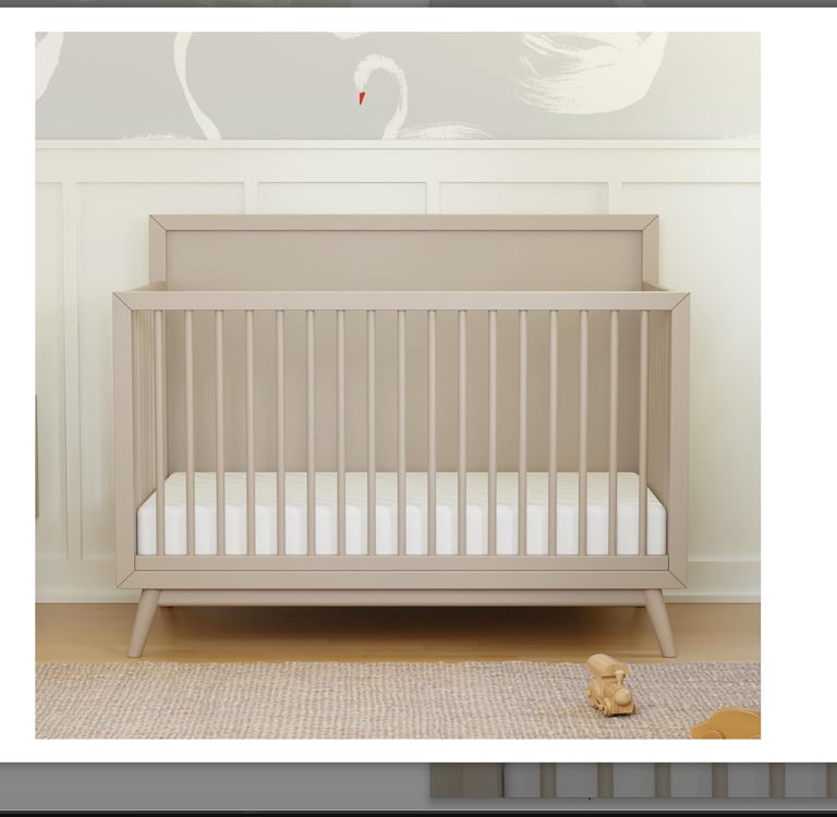 A well-rated mid-range crib with a simple silhouette that fits nicely in limited space. Convertible and functional without extra bulk.